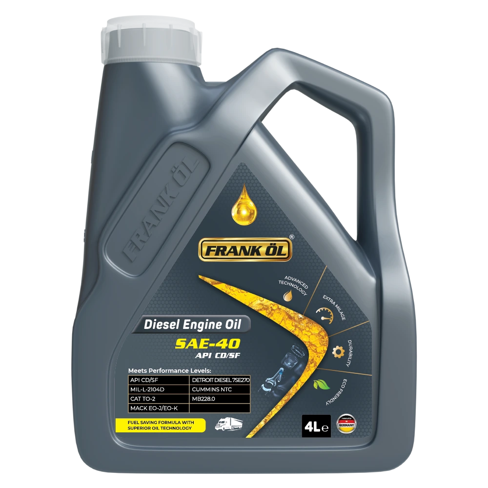 FRANKOL SAE 40 CD/SF Mineral oils are formulated for mixed fleet, multi-grade engines. The oils are manufactured from top-quality virgin base oils featuring high saturate content and are punctiliously balanced by adding specialized additives. Thus, the top-quality petrol and diesel engine oils of the FRANKOL SAE 40 CD/SF are formed. These offer excellent heat stability and high-grade performance. This oil is also suited for light commercial vehicles. Characteristics such as top-grade performance, cost effectiveness and good anti-wear properties make these an excellent.